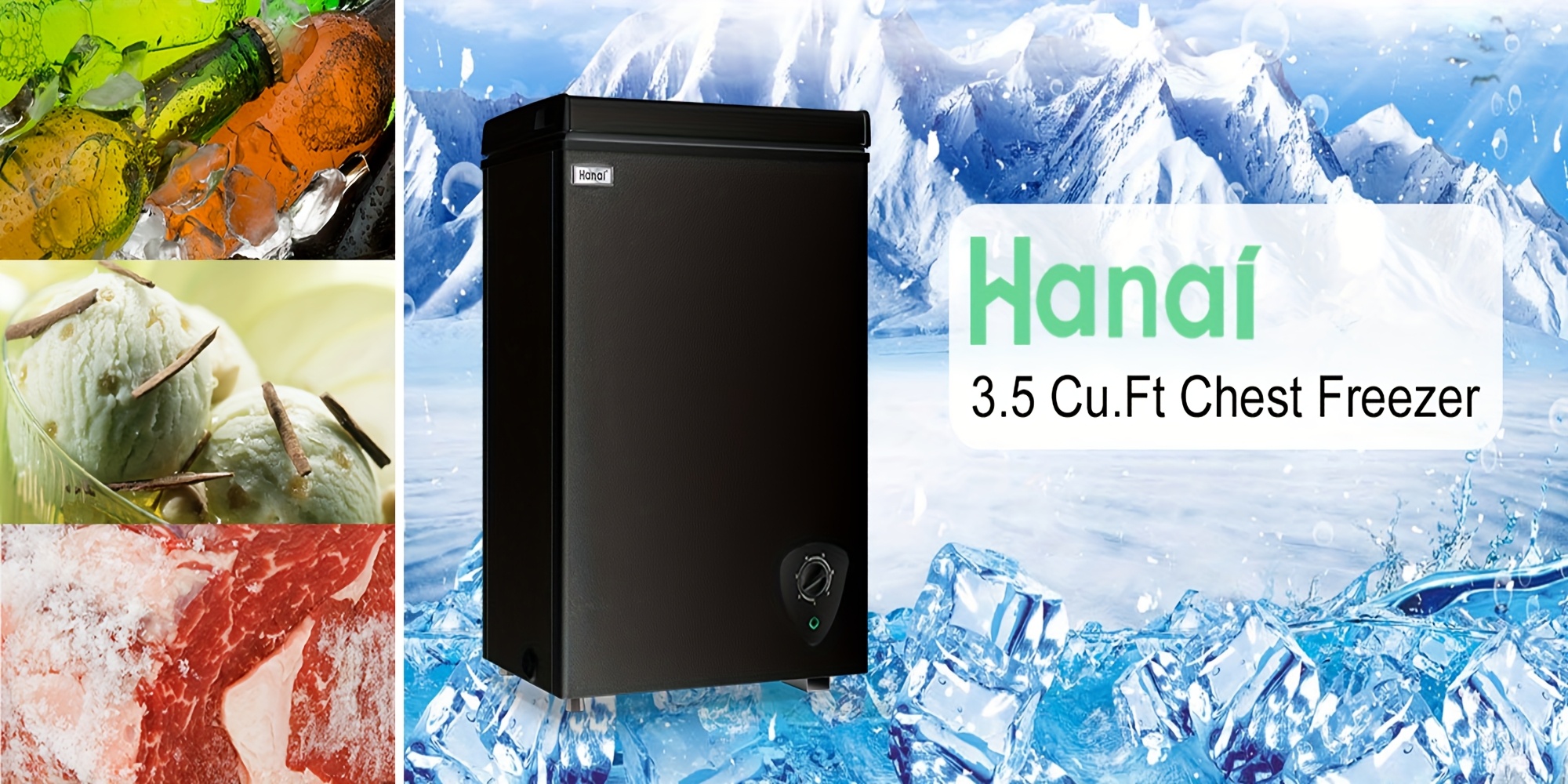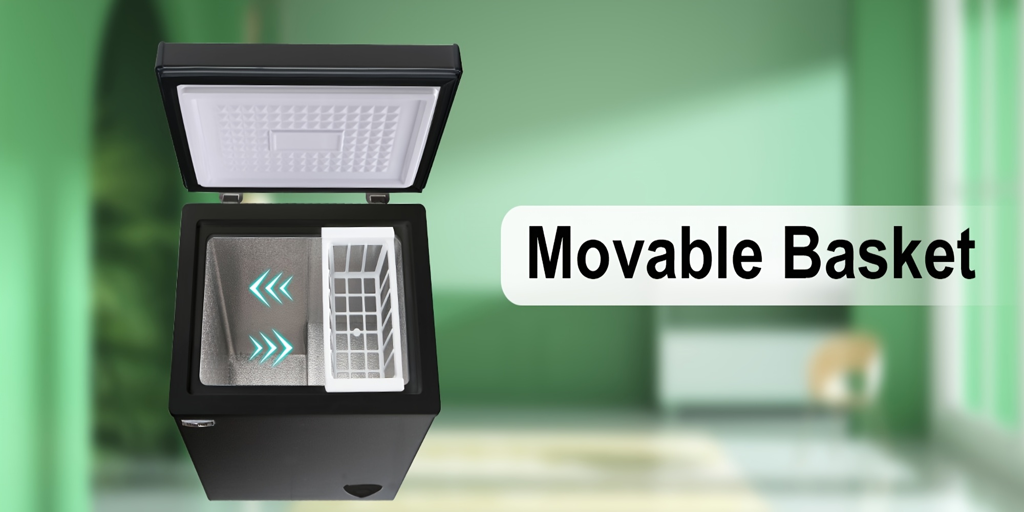 WANAI Chest Freezer Small Freezer Black Deep Freezers Compact Free-Standing Top Door Adjustable 7 Thermostat And Removable Basket Open Deep Freezer Apartment Kitchen